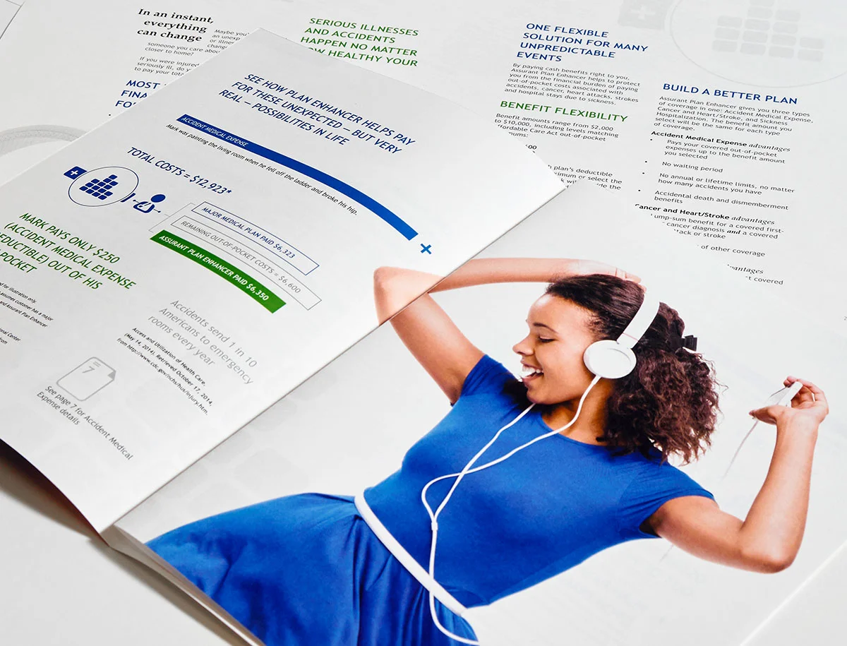 The resulting product-launch campaign pushed Assurant Health's branding to a new level of contemporary simplicity. The copy is straightforward, simple, and gets to the point quickly because accidents, critical illnesses and sicknesses are serious business. The serious subject matter is contrasted by a modern design, using ample white space, strategic icons and positive imagery to promote what customers will feel when they have a plan ready for the unexpected.